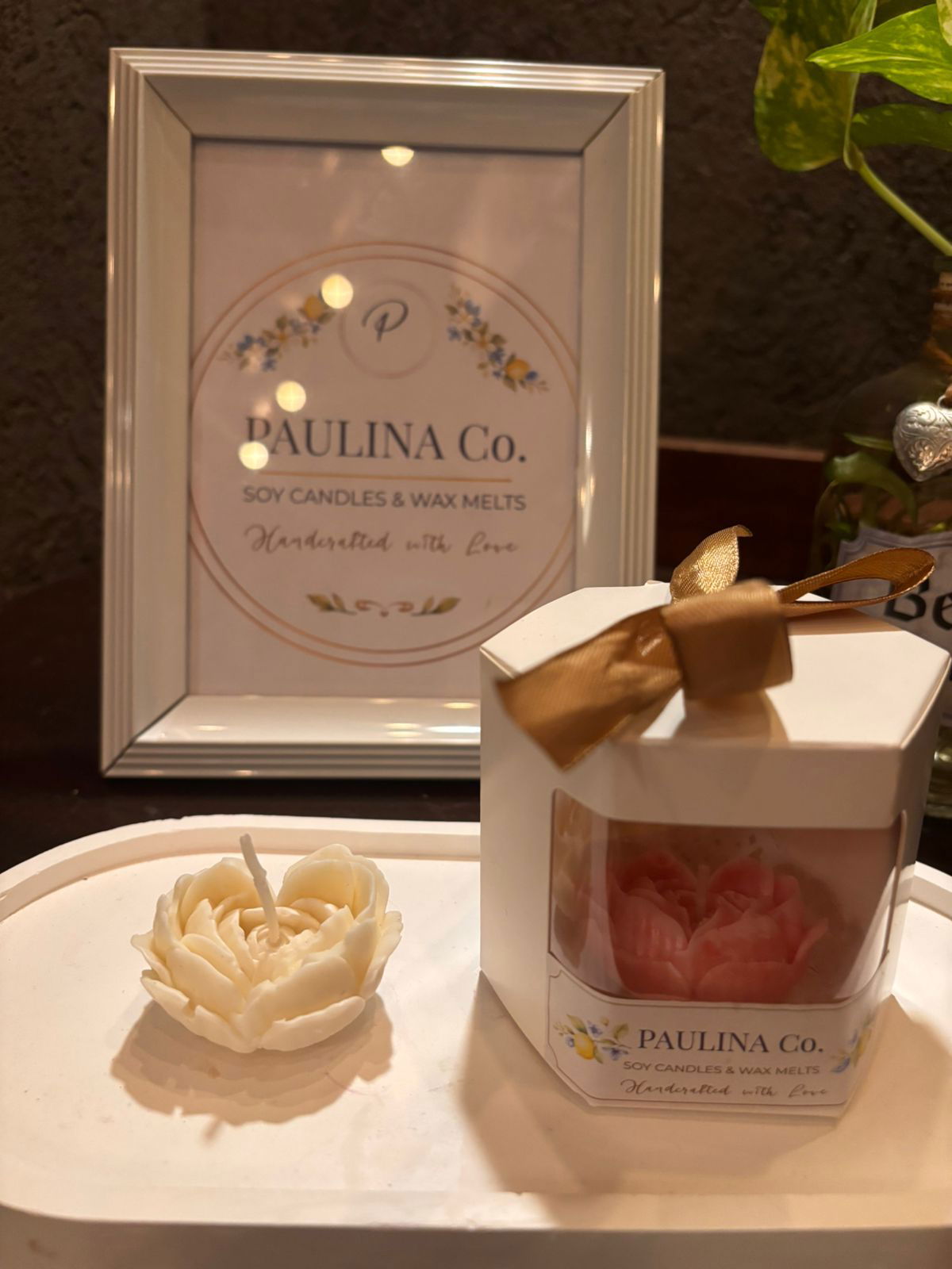 Vela mini en forma de corazón hecha de pétalos