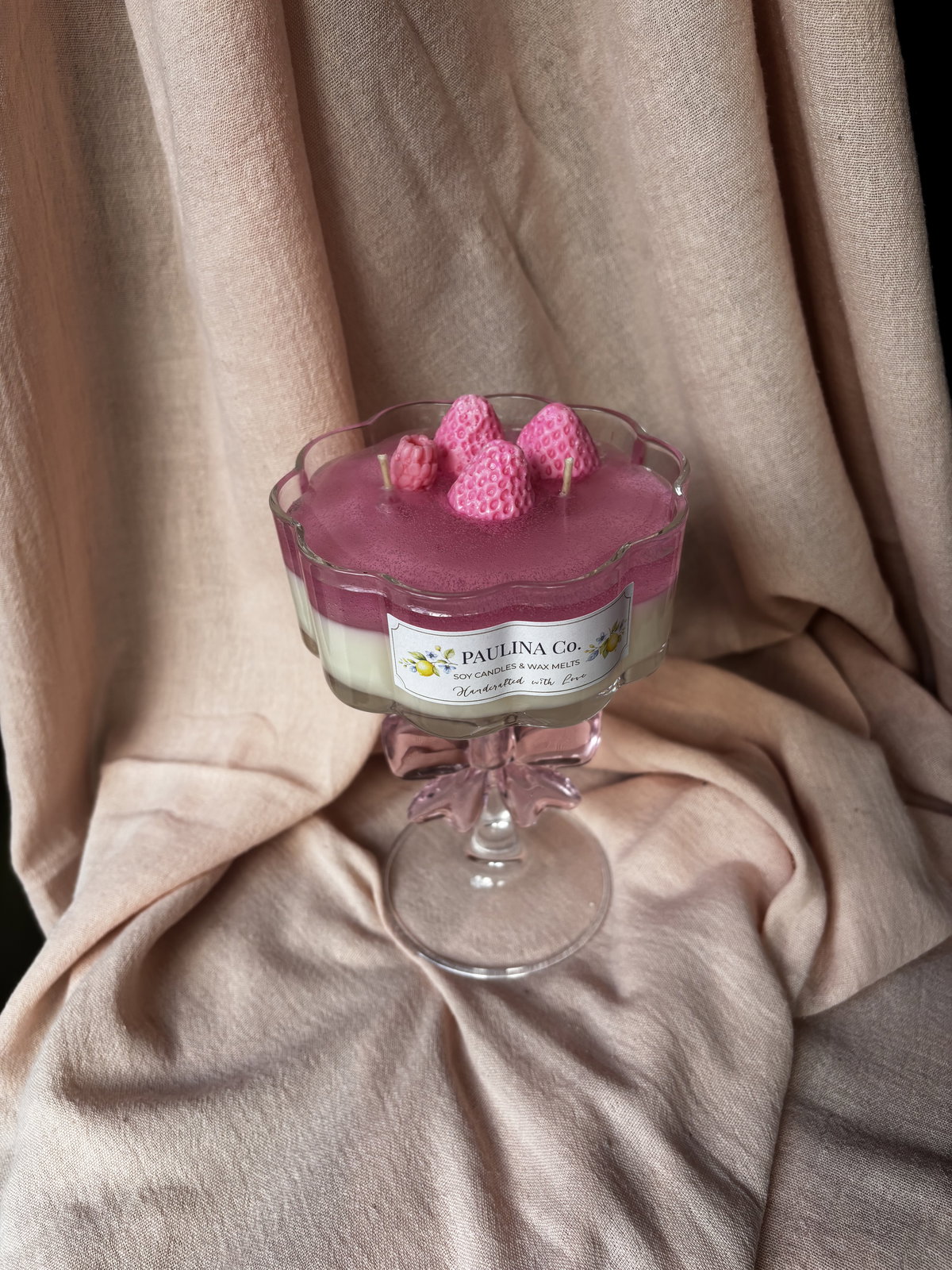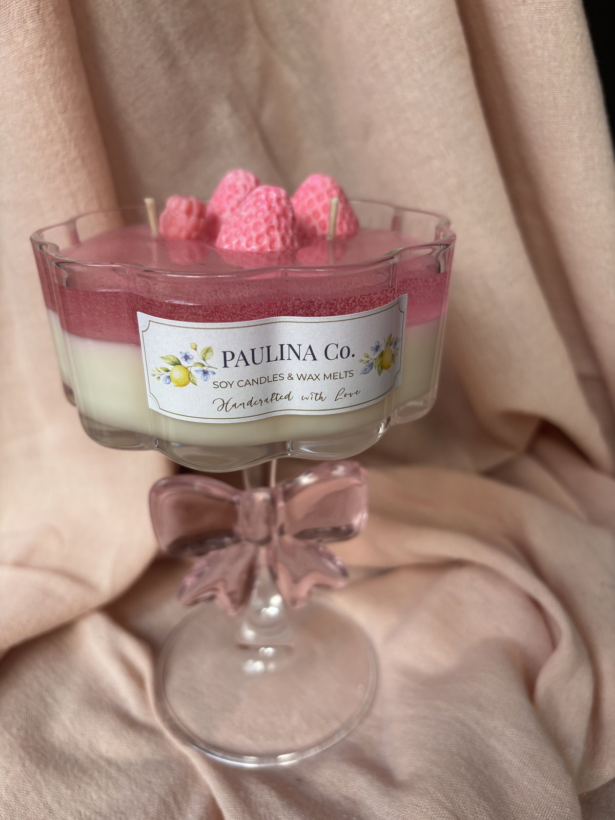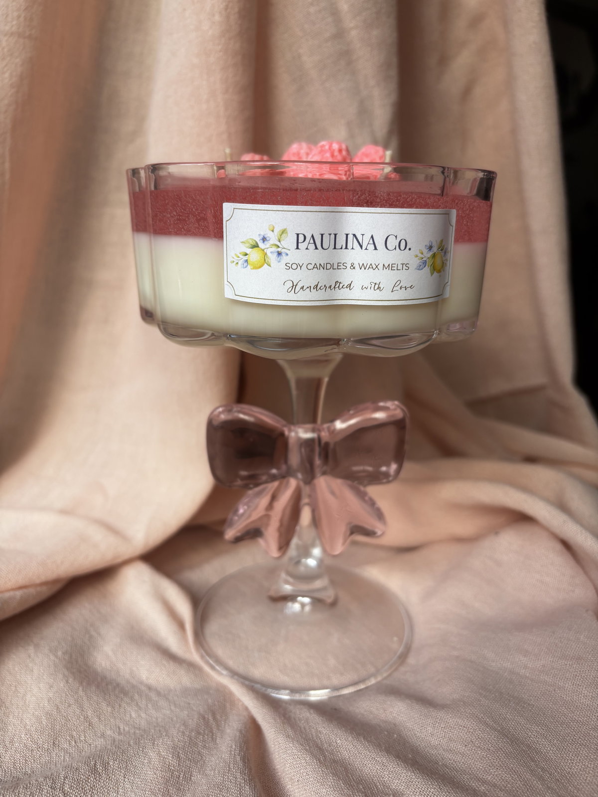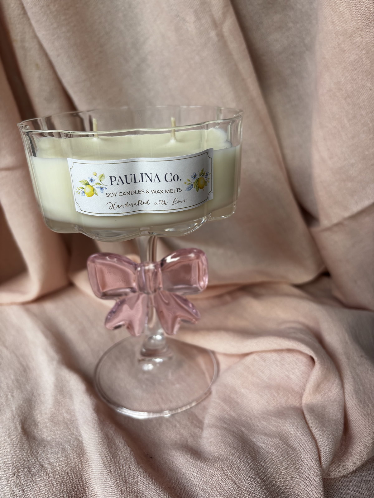 vela hecha con cera de soja y cera en gel en copa de vidrio.
