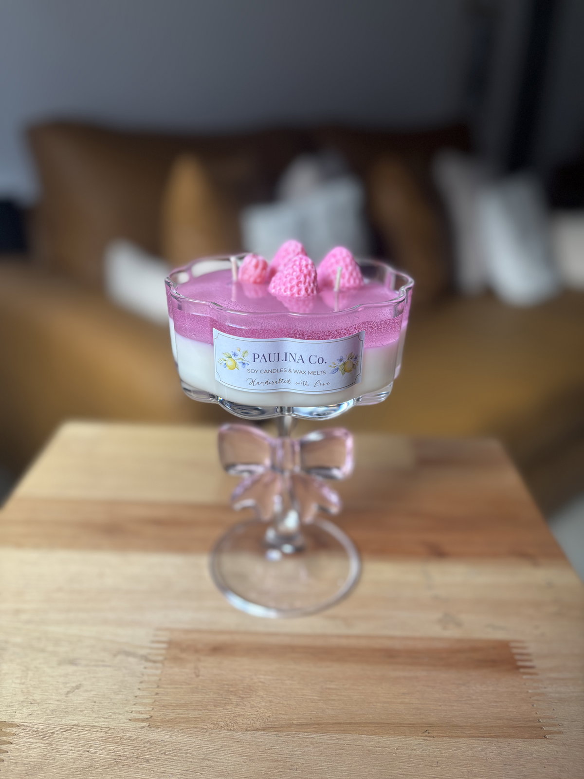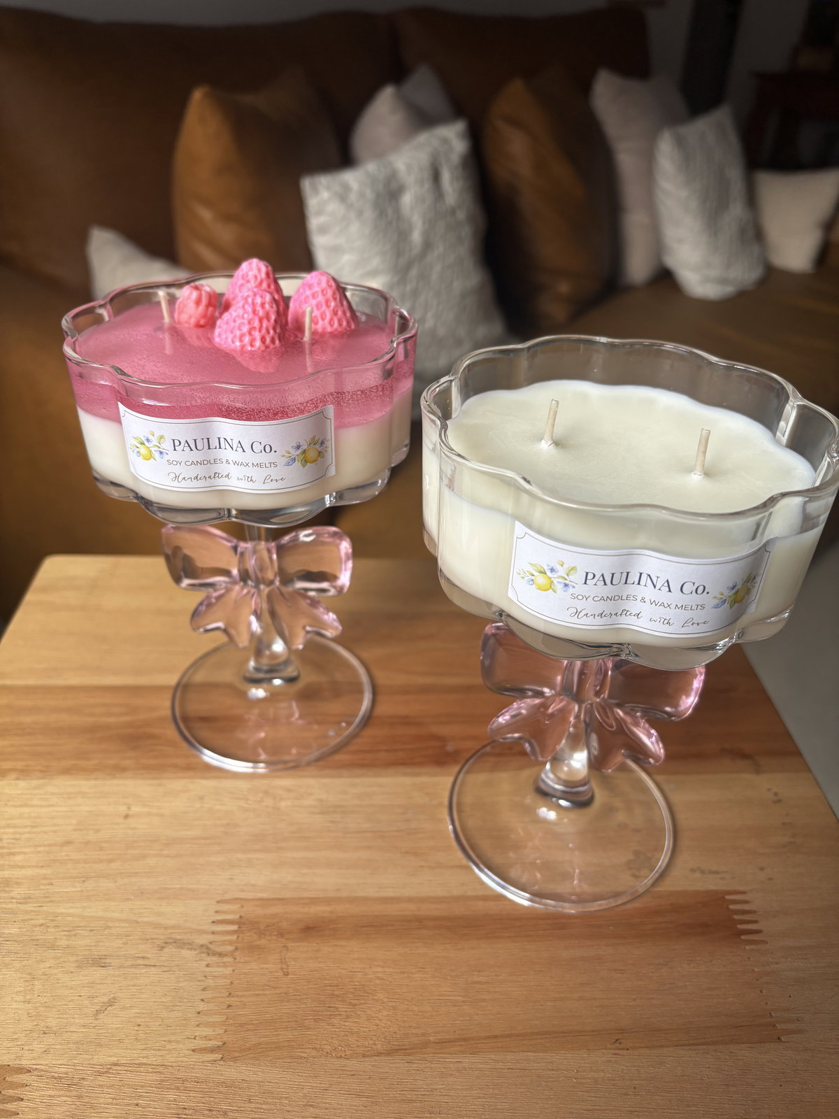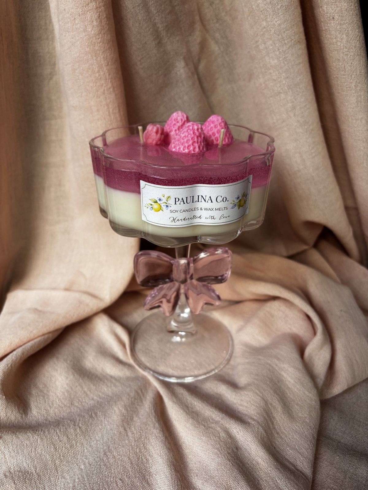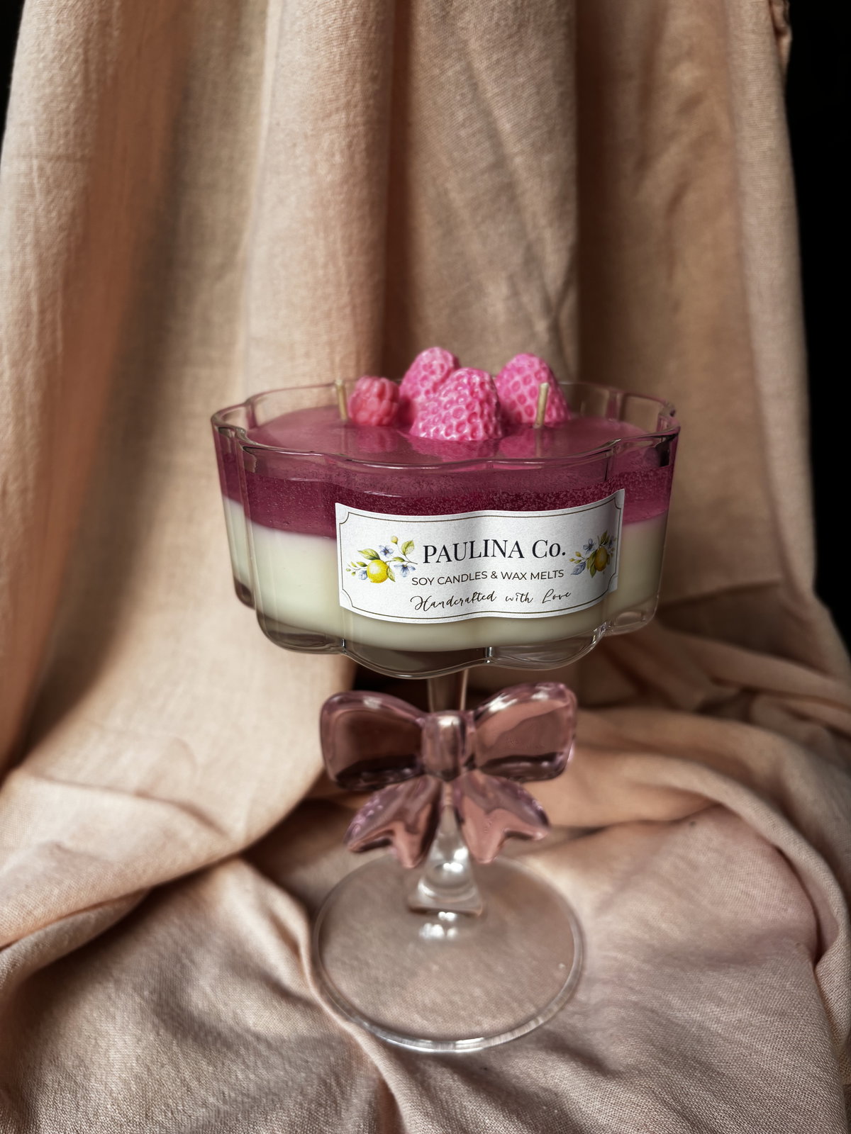 vela hecha con cera de soja y cera en gel en copa de vidrio.