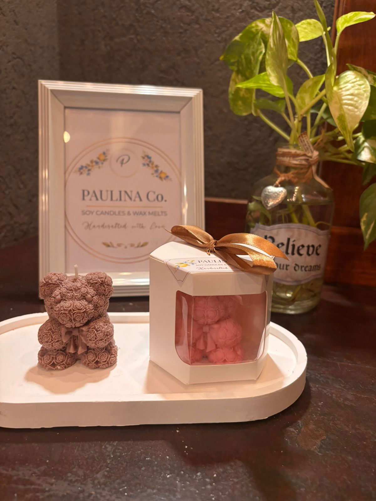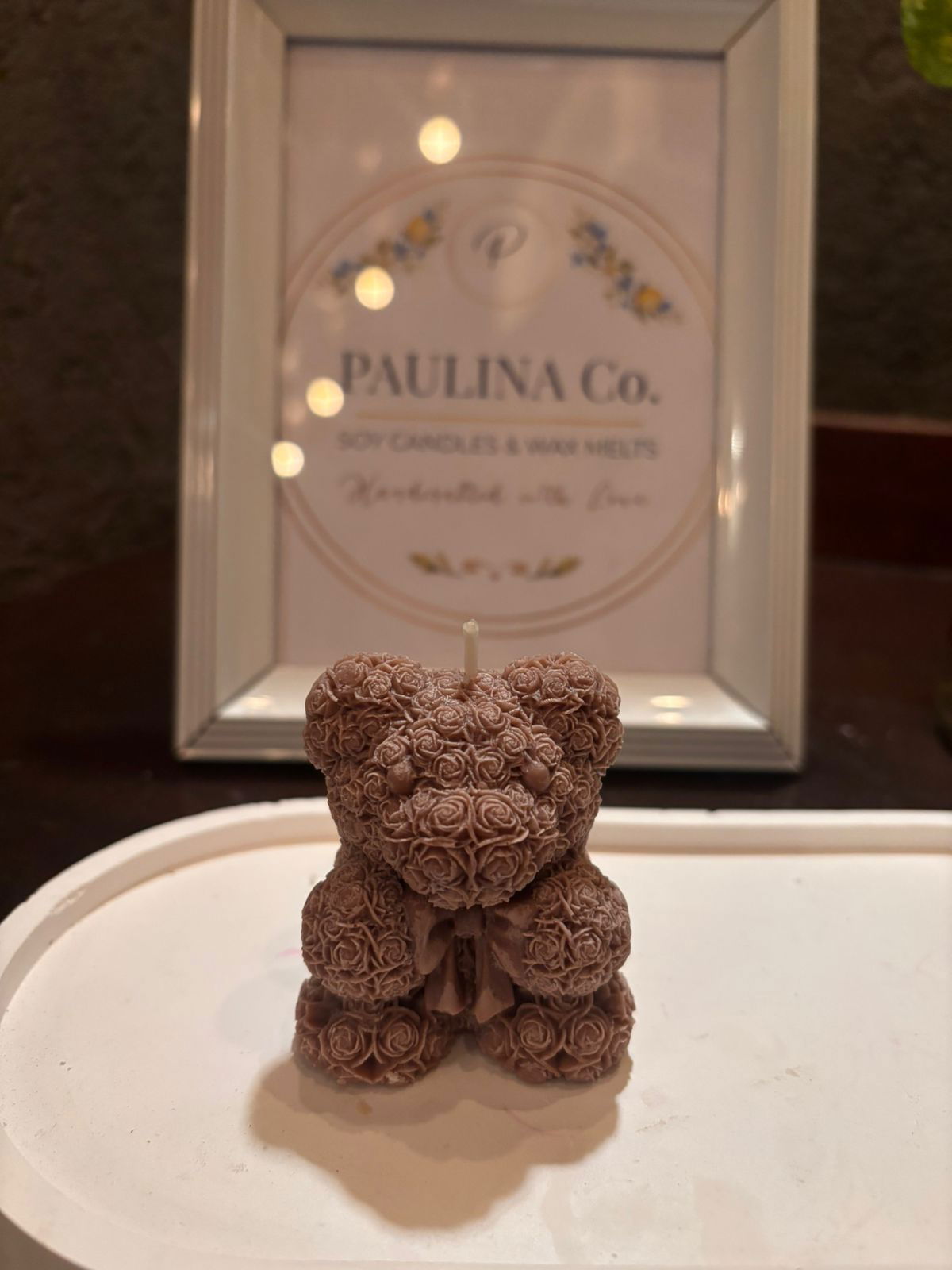 Vela de molde de osito con corazón (color y aroma a elección)