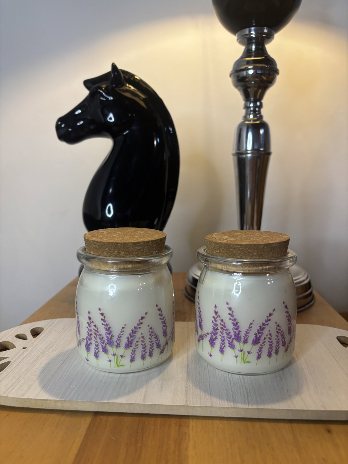 Vela en frasco de vidrio con tapa de corcho. El aroma es a elección del cliente